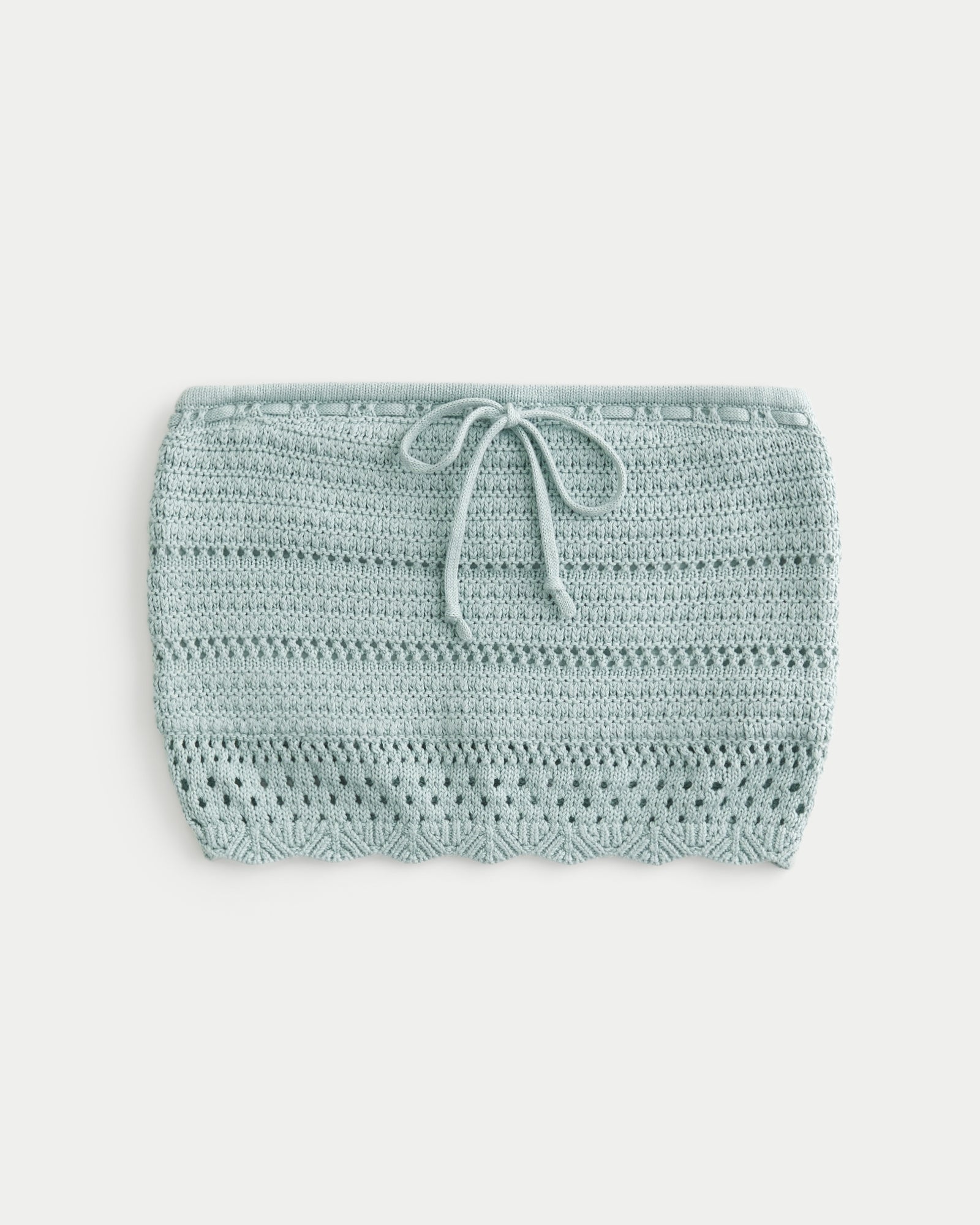 Soft and comfortable, this tube top features a crochet-inspired design and a tie-neckline. Cropped fit.